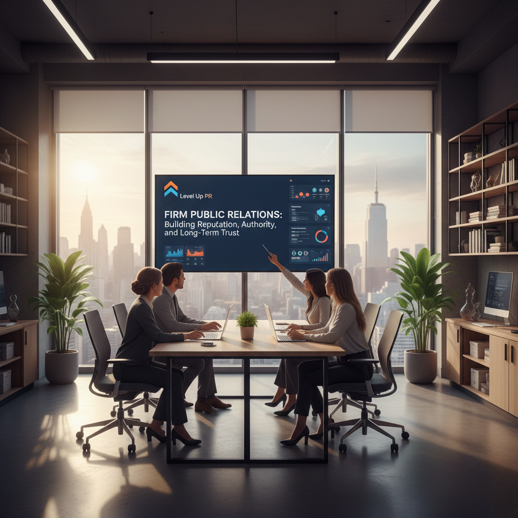 Firm public relations focuses on managing communication, building credibility, and strengthening public image. Unlike advertising, which promotes services through paid campaigns, public relations builds influence through earned media, strategic storytelling, and reputation management.