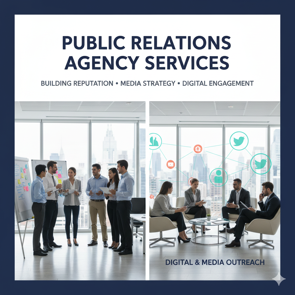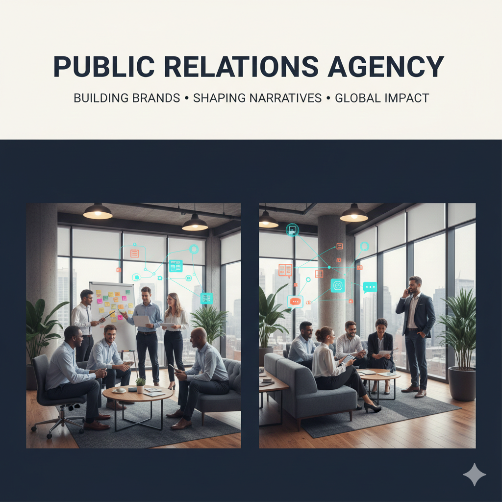 A public relations agency manages how a brand is perceived by the public, media, and key stakeholders. Unlike advertising, which focuses on paid promotion, PR focuses on earned credibility through storytelling, media coverage, and reputation management.