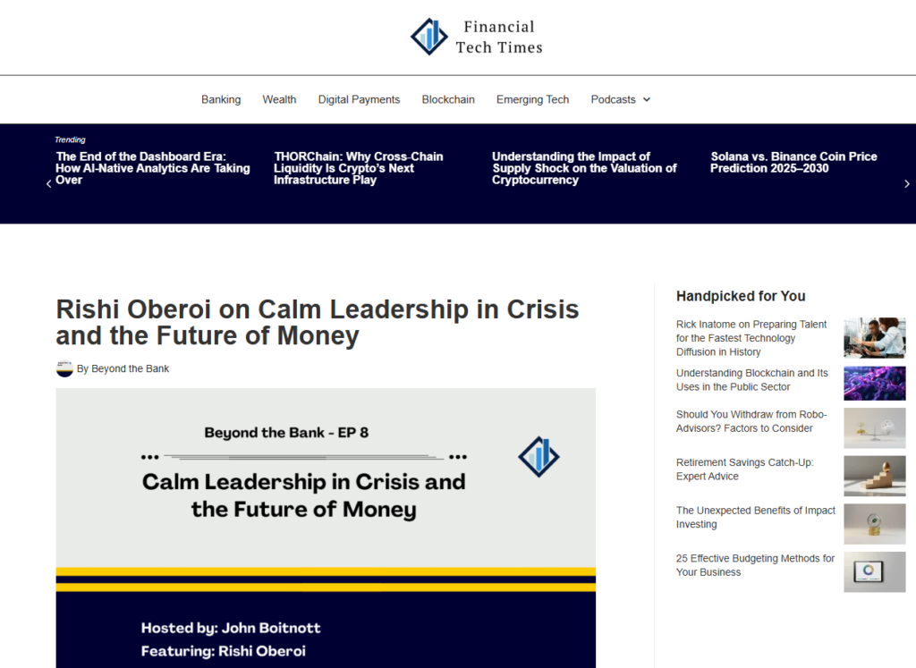 This narrative was supported by a comprehensive media kit and pitched to journalists across global business and fintech publications, positioning Rishi as an authority on: